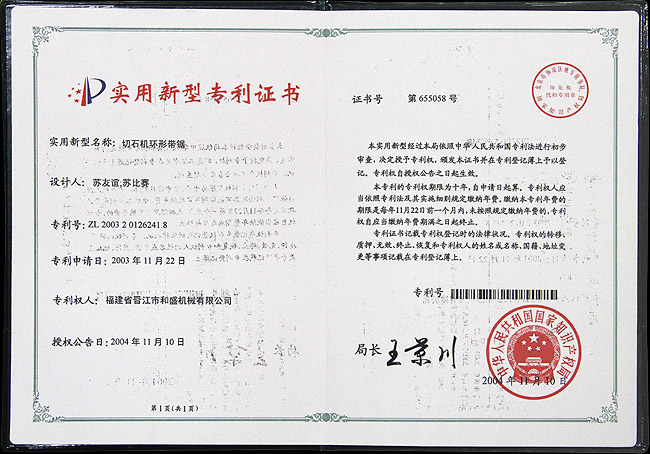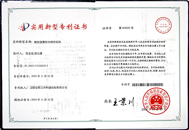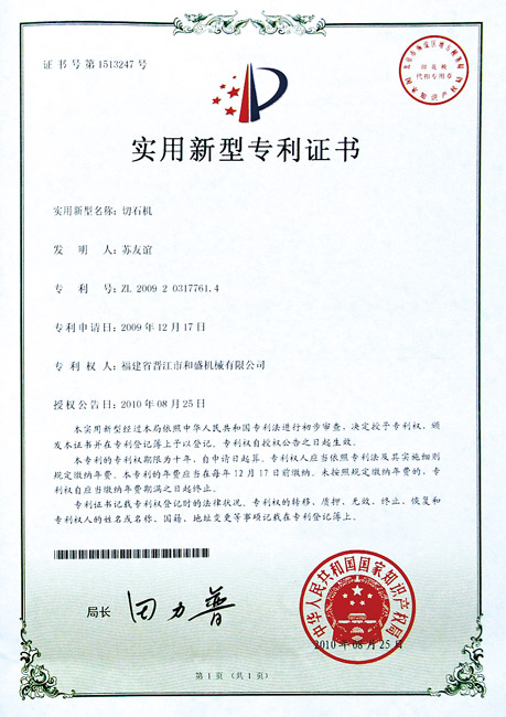 切石機實用新型專利證