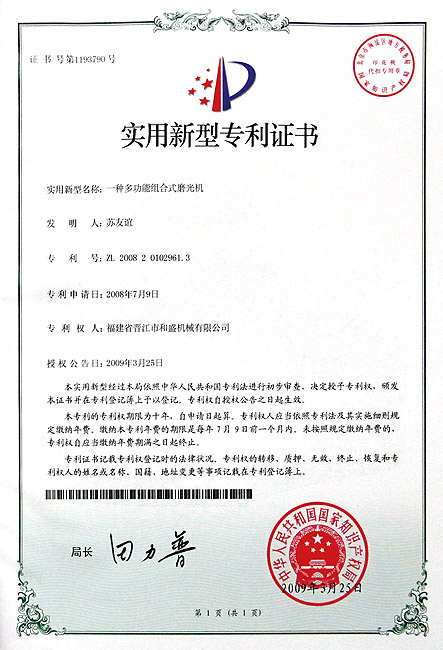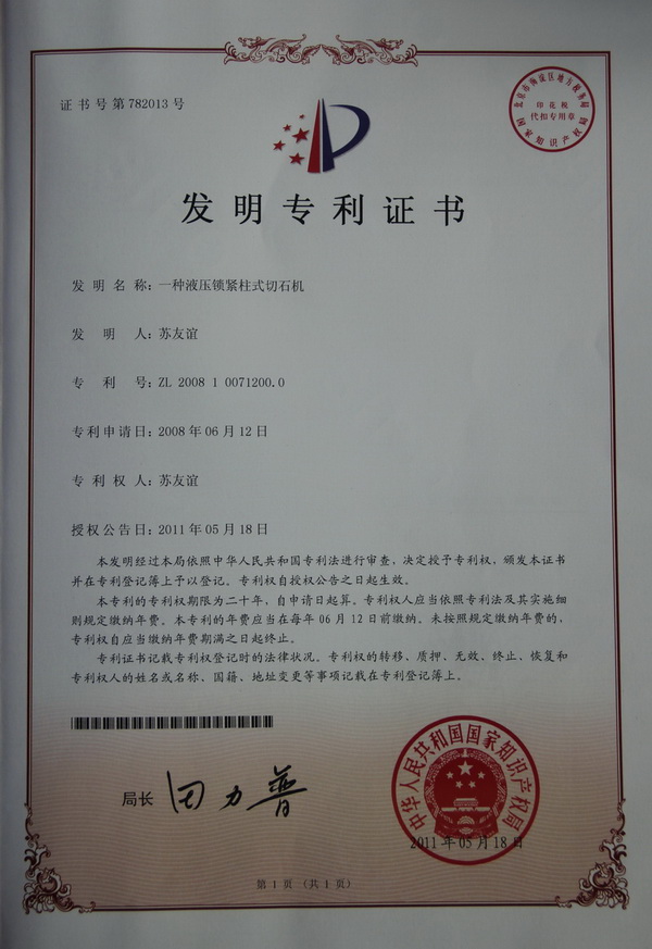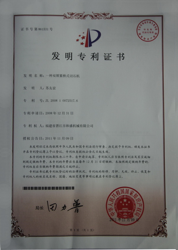 切石機實用專利證書